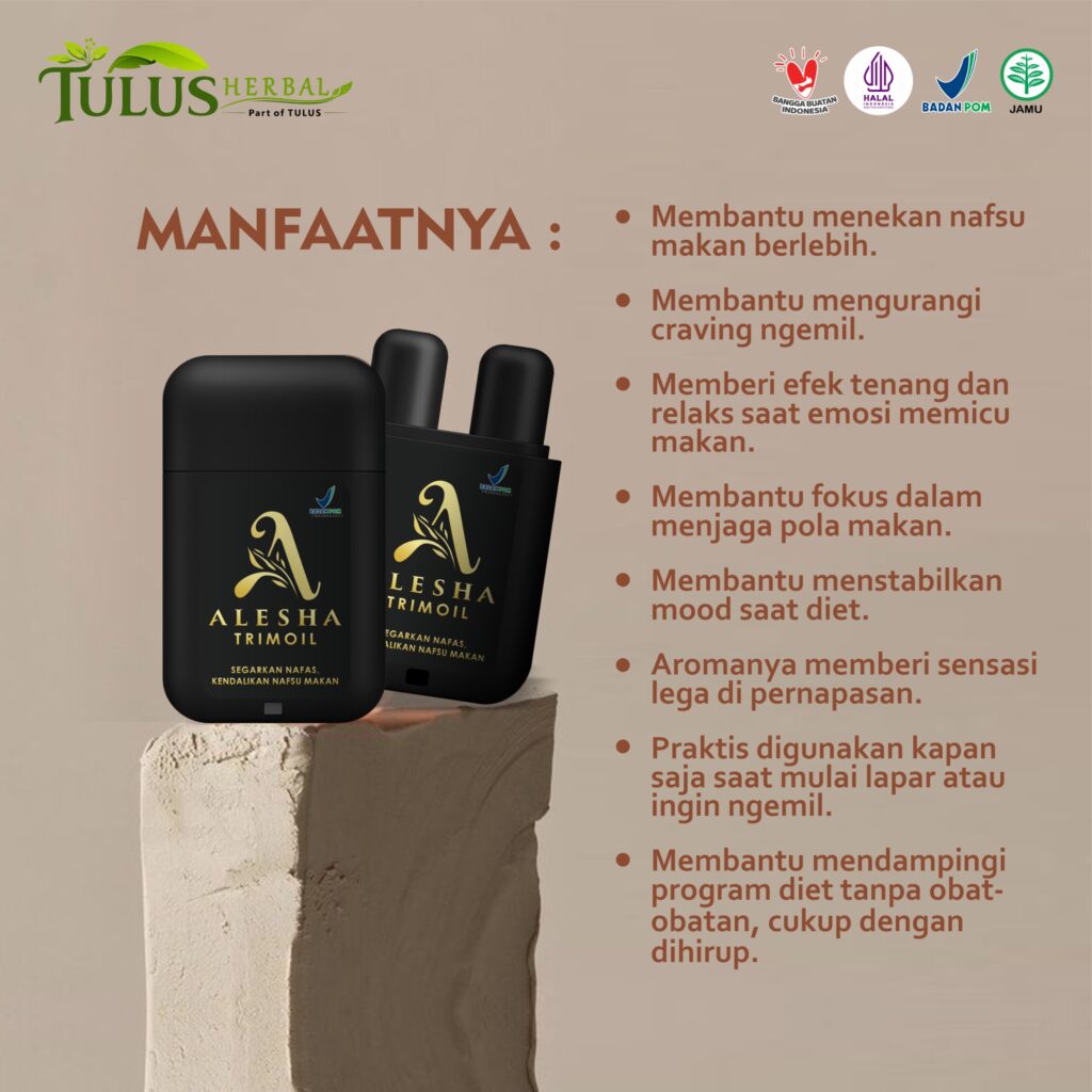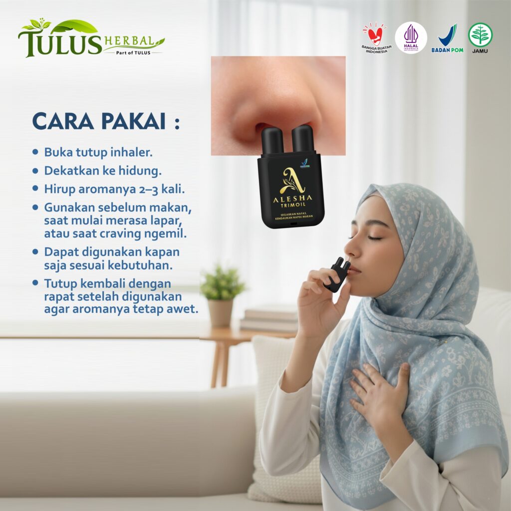 Alesha Inhaler dari Tulus Herbal adalah inovasi aromaterapi modern yang dirancang untuk membantu mengontrol nafsu makan, mengurangi craving, dan menjaga keseimbangan tubuh secara alami.